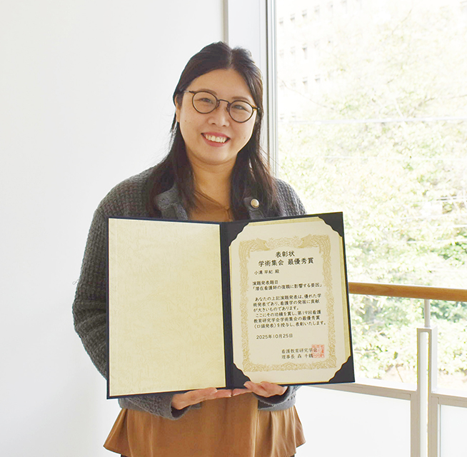 和洋女子大学大学院 看護学研究科1期生の小溝早紀さんが「第19回看護教育研究学会学術集会」で最優秀賞を受賞!