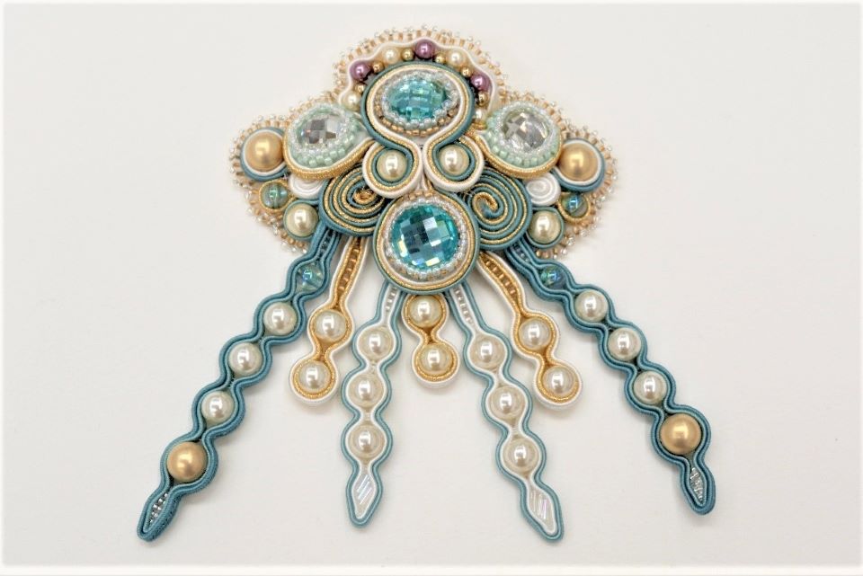 「AJCクリエイターズコンテスト2023」に服飾造形学科の在学生や卒業生が応募し、アートジュエリー部門で15名(佳作:1名、入選:14名)、ファッションアイテム部門で2名(佳作:1名、入選:1名)が受賞しました。アートジュエリー部門に応募した学生たちは専門科目である「ニードルワークB」の授業内で、ソウタシエ(コード刺繍の一種で、コード、ビーズ、天然石などを組み合わせたコスチュームジュエリーの総称)やビーズ刺繍の技法を用いた思い思いのアクセサリー作品を制作し、コンテストに応募しました。