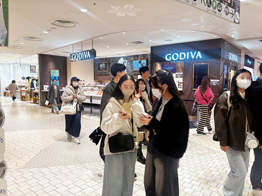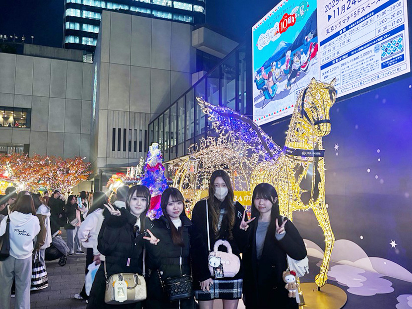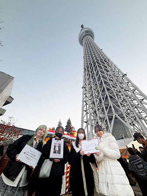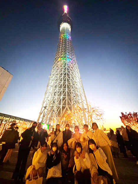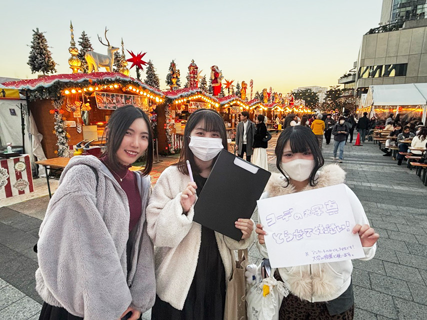 【写真】東京ソラマチでのフィールドワークの様子。クリスマスマーケットが開催されており、多くの人で賑わいをみせていました