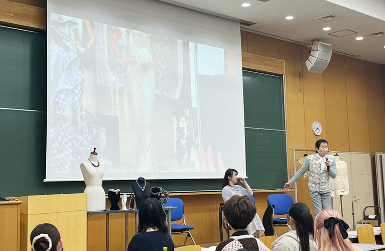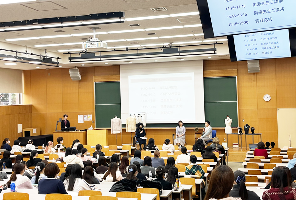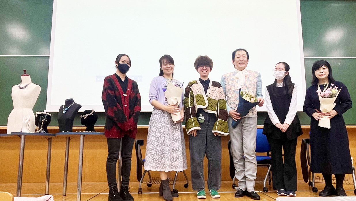 12月20日、服飾造形学科※にて広瀬光治氏・周藤紀美恵氏による「ニット・コスチュームジュエリーの魅力と可能性」と題して、特別講演を開催しました。当日は服飾造形学科の多くの学生が講演に足を運びました。