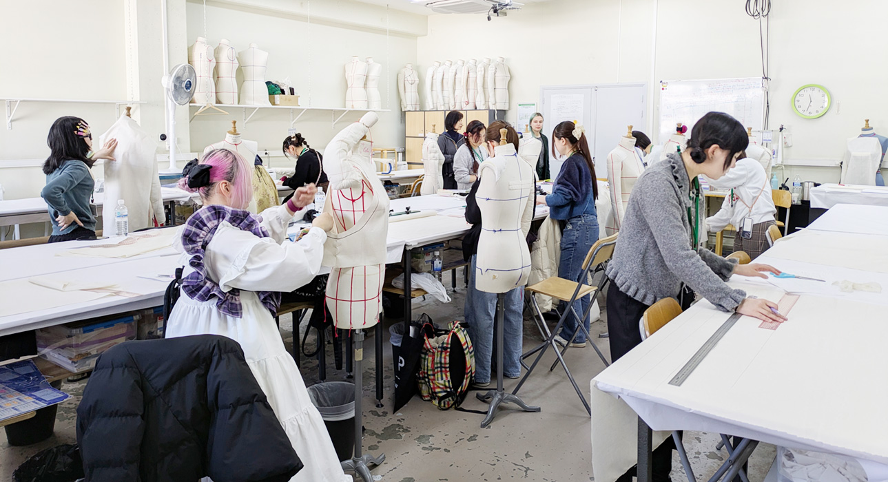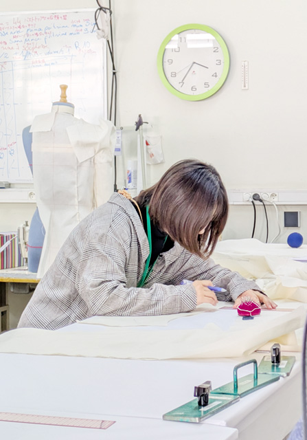 服飾造形学科※では、2016年より服飾の本場、フランスのデザインと技術を学ぶことができる「海外服飾学研修※」を実施しています。今回は10名が参加し、フランス・パリにある服飾専門学校「AICPアカデミー・アンテルナショナル・ド・クープ・ド・パリ(AICP)」にて、10日間にわたって研修を行いました。引率は服飾造形学科の下之角千草助教です。