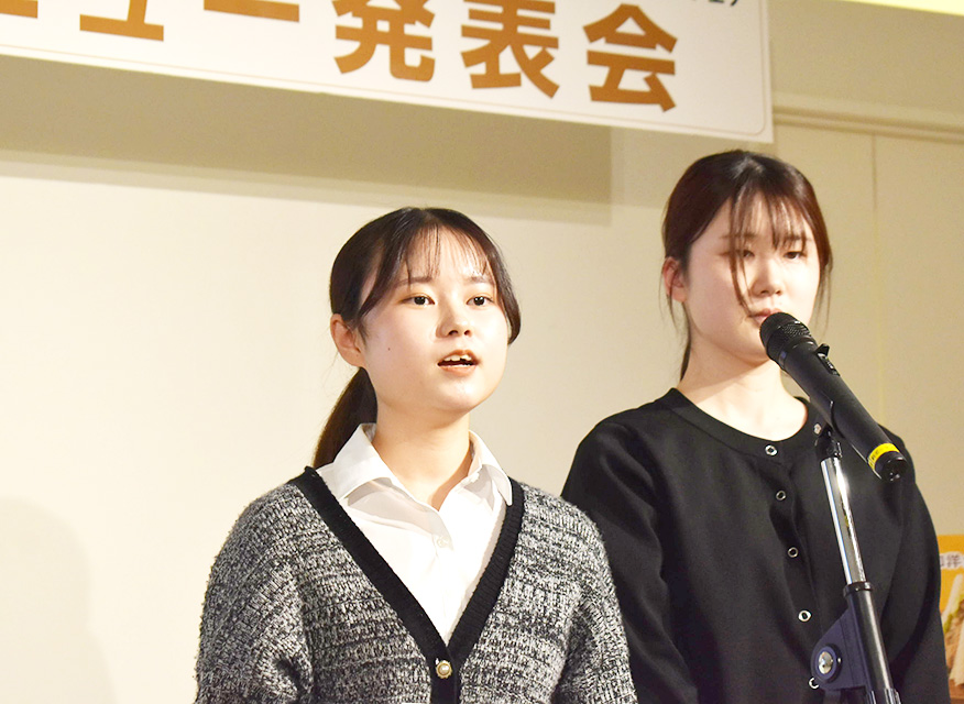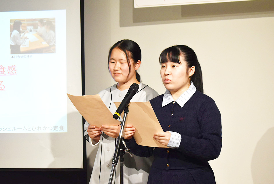 【写真】取材陣の前で、それぞれ考案したメニューを発表する学生たち
