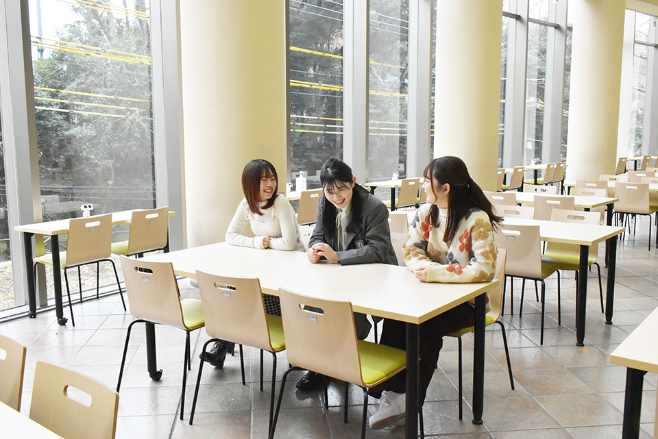 【写真】南館の食堂「シルフィード」で話す、仲良しの3人
