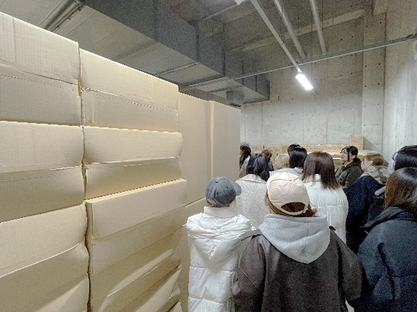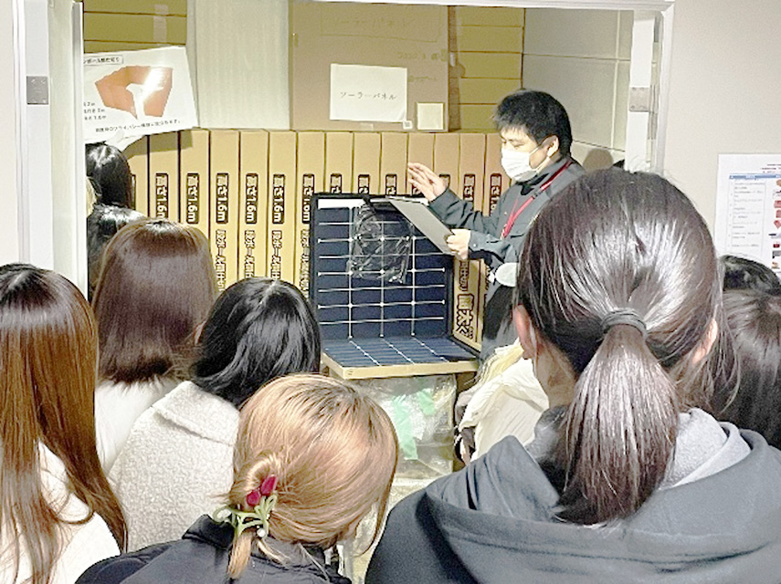 家政学部の学生たちが「地域生活創造演習」の授業の一環で、大学構内の防災倉庫の見学を行いました