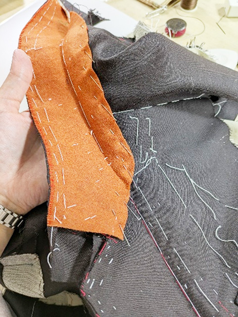 【写真】ジャケット講習を通じてフレンチテーラリングテクニックを学び、製作技術を継続的にアップデートしています。 授業や実習を通して学生指導に活かしています。