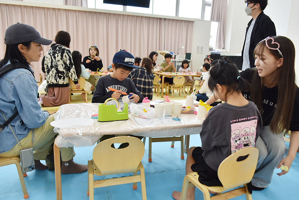 こども発達学科の学生たちが里見祭(大学祭)で「遊びの広場と親子制作」のワークショップを行いました
