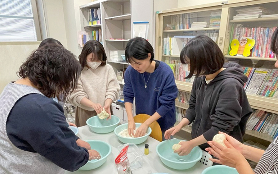 【写真】「小麦粉粘土あそび」小麦粉粘土のぷにぷにした感触が楽しい!