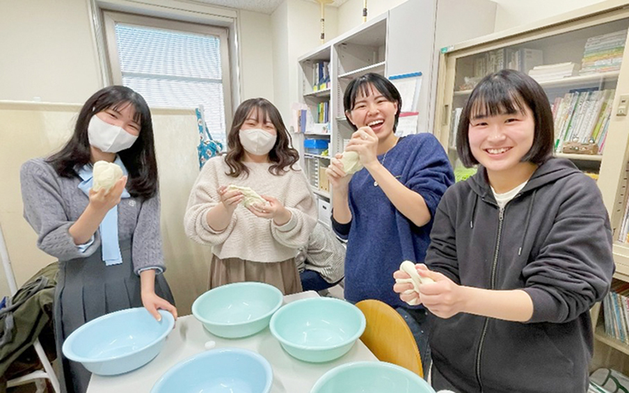 そして、学生たちはいよいよ「小麦粉粘土」「寒天あそび」「片栗粉あそび」の体験へ!!