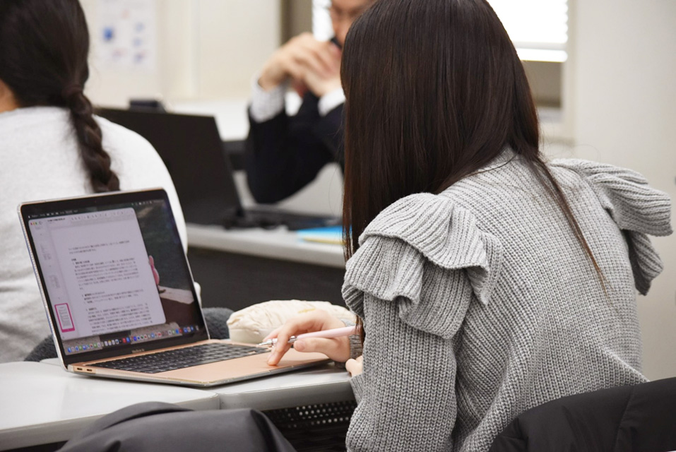1月15日、こども発達学科の矢藤ゼミの4年生が、卒業論文の発表を行いました。当日は、2コマ分の時間を用いて、3年生のゼミ生と合同で実施しました。今年は完全ペーパーレスとなり、各自がタブレットやパソコンで資料を読み上げていくスタイル。発表原稿をスマートフォンで読み上げる学生もいました。4年生それぞれの発表ごとに質疑応答を行い、その後、卒業論文作成に向けて、3年生からの質問に4年生がアドバイスをする時間も設けました。