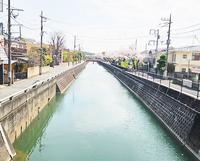 【写真】4月の国府台の真間川。大学の近くを流れています