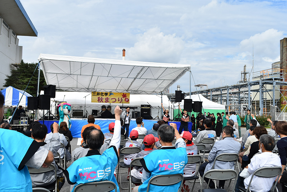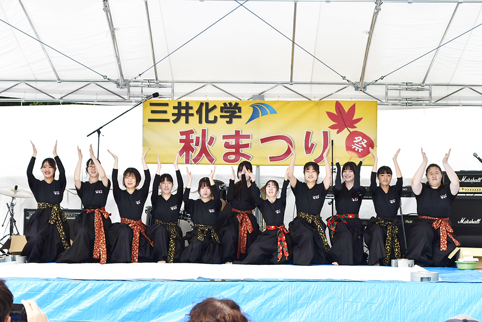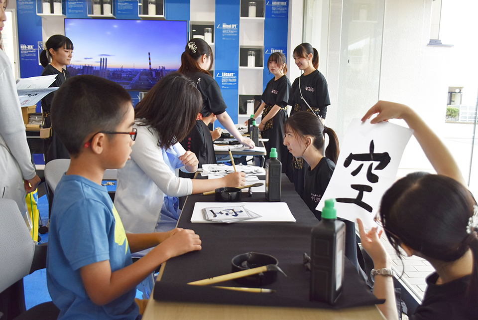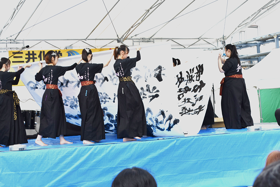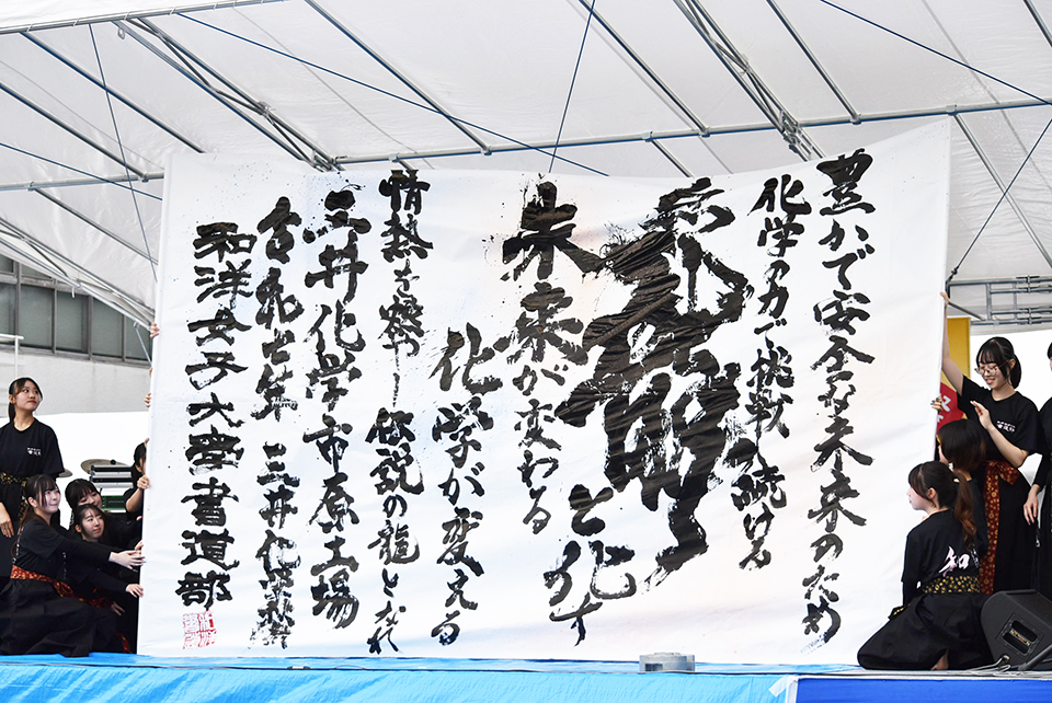 10月19日、和洋女子大学 書道部が三井化学株式会社 市原工場で開催された「三井化学秋祭り」のオープニングで書道パフォーマンスを行いました。