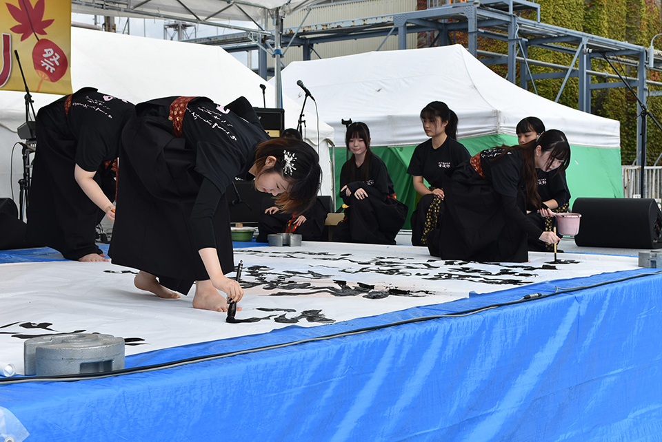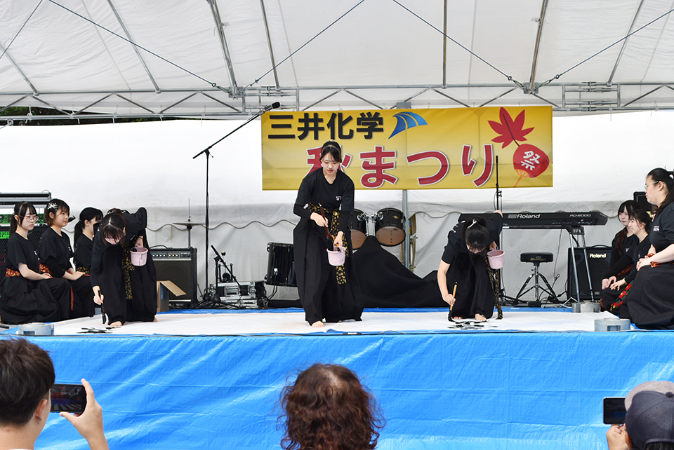 三井化学秋祭りで書道部の学生たちが、書道パフォーマンスを披露しました