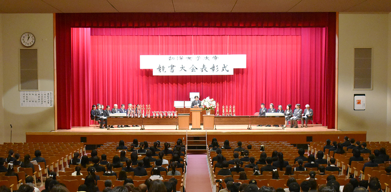 11月23日、和洋女子大学講堂にて、和洋女子大学主催・日本文学文化学科共催「第23回 競書大会」表彰式を挙行しました。当日は、競書大会で入賞した小学生・中学生・高校生の皆さん128名と先生・保護者の方々にご参列いただきました。北は岩手県、南は鹿児島県から、およそ200名の方が集まってくださいました。