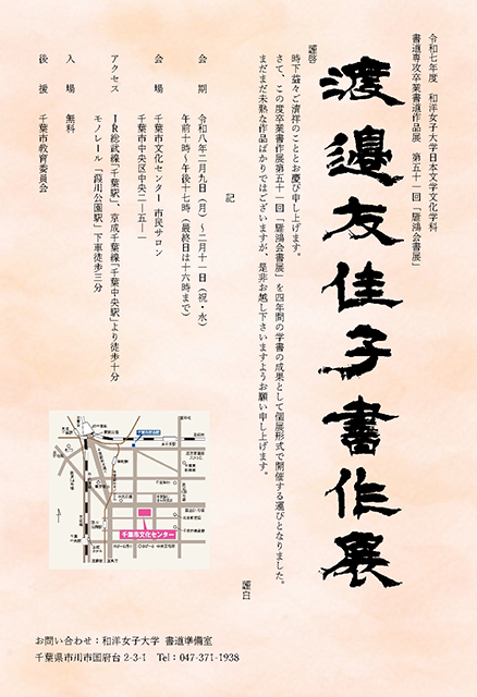 和洋女子大学 書道準備室 TEL:047-371-1938
