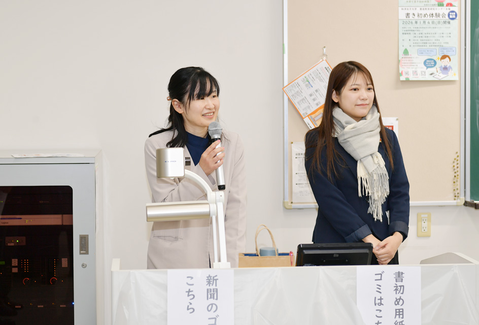 「書き初め体験会」は、ユネスコ無形文化遺産への登録が間もない「書道文化」を次世代に引き継いでいくこと、日本文化の中核をなす書き初めを体験することを目的としています。今後は市川市・佐倉市の教育委員会との共催を予定しており、大学を中核としながら周辺地域と共に書道文化の継承と発展をめざします。書写書道教育と日本の文字文化に対する関心を高め、和洋女子大学及び書道専攻における長期的な学生確保の一手段として書き初め体験会を開催します。