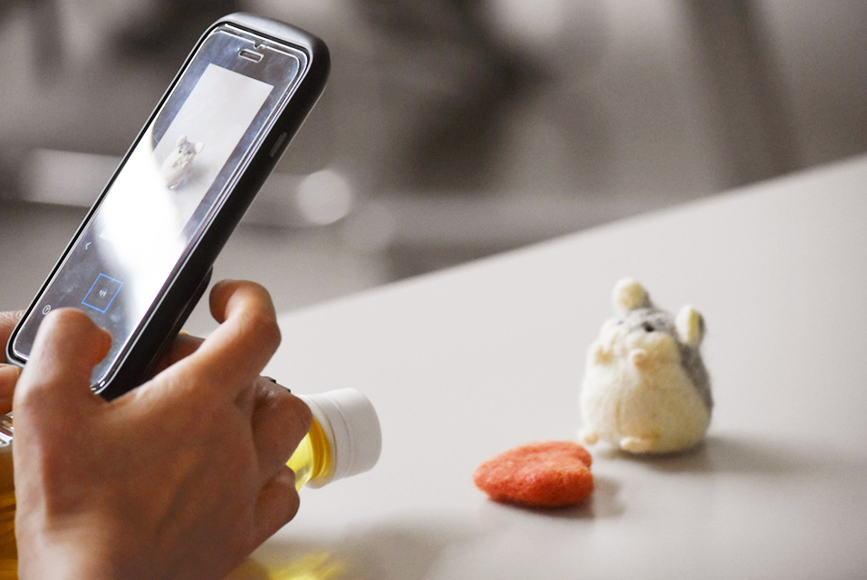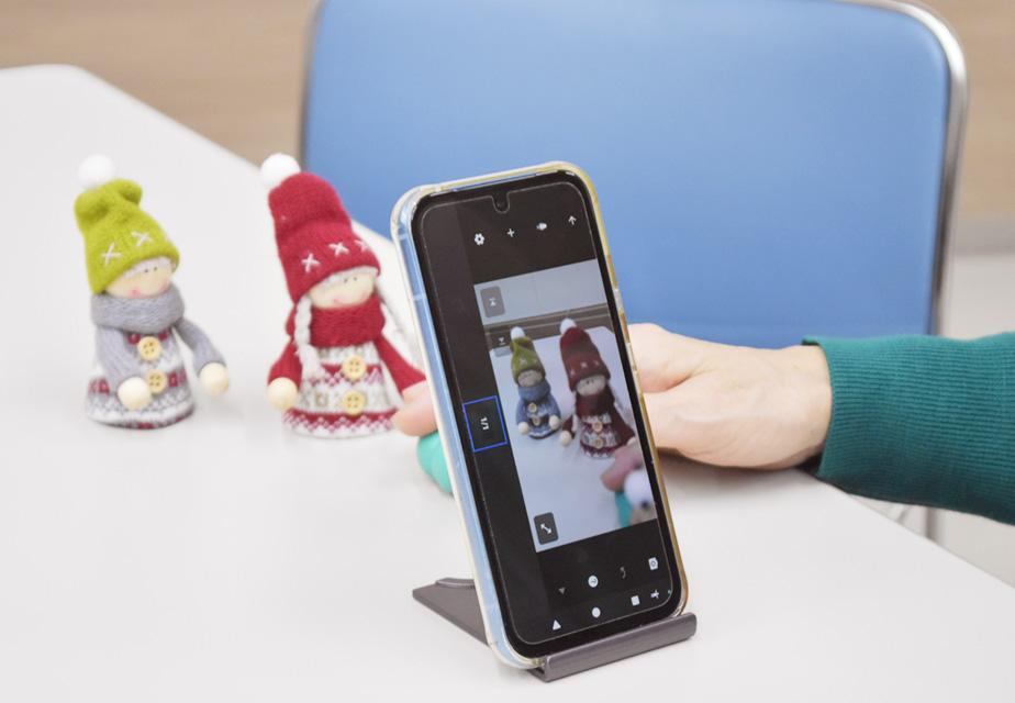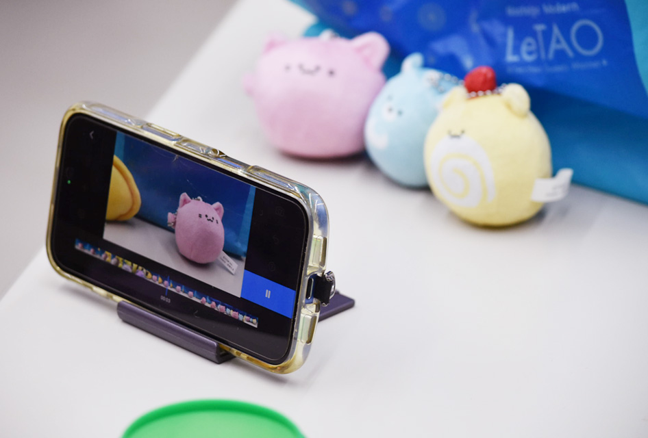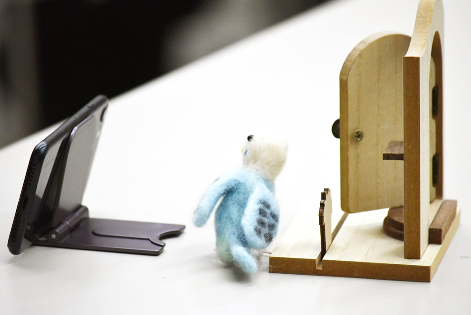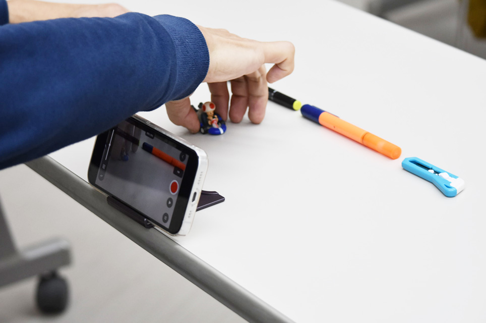 【写真】ぬいぐるみや小物を少しずつ動かしながら、スマートフォンでコマ撮りしていきます