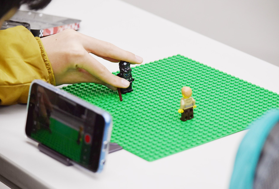 【写真】レゴを使用してコマ撮りをする様子