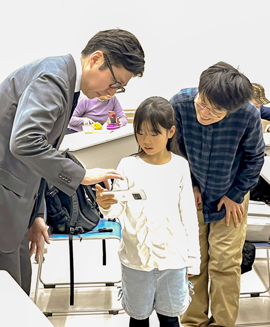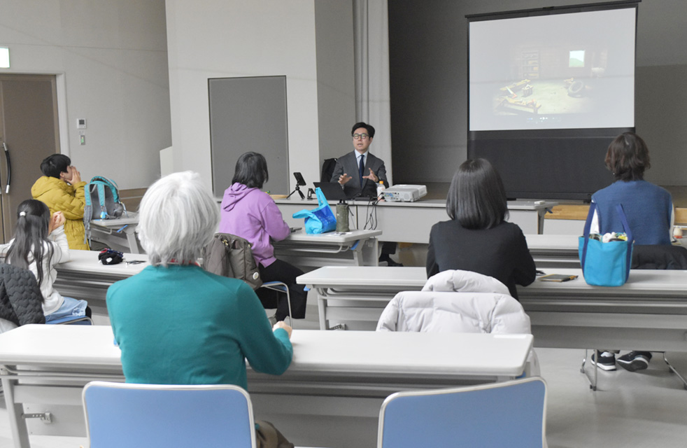 2月19日、市川市文化会館で(公財)市川市文化振興財団主催による美術ワークショップ「スマホでつくる! かんたんコマ撮りアニメ講座」を開催しました。コマ撮りアニメの本場、チェコへの留学経験を持つ日本文学文化学科 文化芸術専攻の仁藤潤准教授が講師を務め、アニメ制作の基礎から楽しくレクチャー。参加者は、動かしてみたい玩具やフィギュアを持参して、実際にコマ撮りのアニメーション制作に挑戦しました。