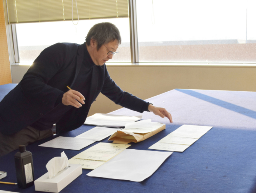 今回、学位記に実際に筆を入れている様子を撮影させていただいたのは、書道専攻の川合広太郎准教授。川合先生にどのような気持ちで書かれているかを伺ってみたところ、「自分自身にとって、年に一度のとても勉強になる時間。大変な作業ではありますが、楽しみにもなっています。墨で書いたものは、1000年経っても残ります。後世に残す大切な証書ですから、毎年、しっかり取り組んでいます」とのこと。