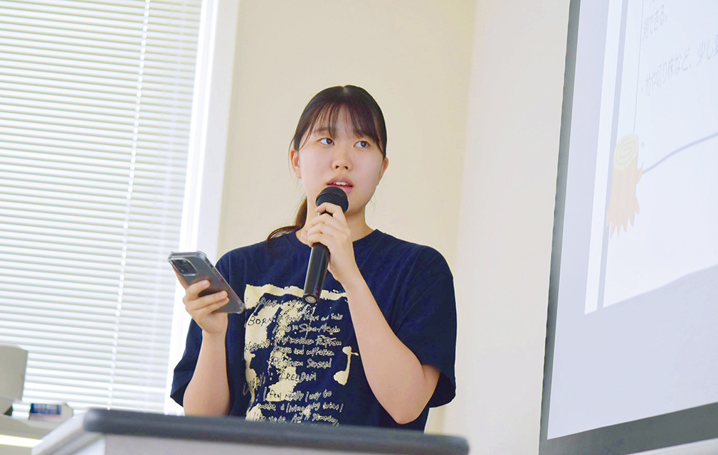 これらの授業では、上級生がSA(Student Assistant)としてサポートに入っています。先輩としてコメントをしたり、1年生たちが大学での新しい講義に入っていきやすいように働きかけをしてくれています。上級生にとっても、SAの経験を通して『授業内容を理解していても言葉で説明することの難しさ』を感じるなど、さらなる成長につながる体験となっています。また、オープンキャンパス学科学生スタッフとして参加する学生も多く、高校生やその保護者に自身の学びや成長を語ることを通して自身の成長を実感し、説明する力を高めていきます。