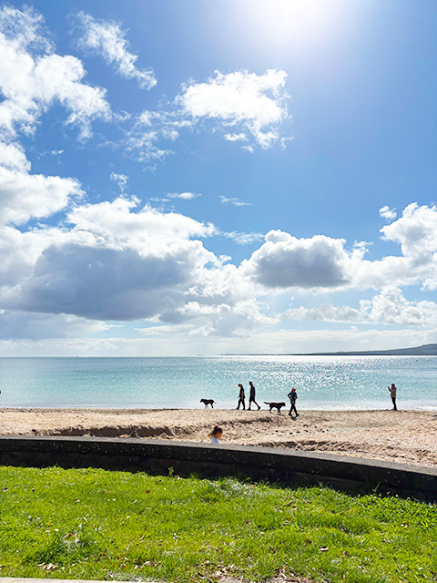 学校の友達と買い物や海に行ったり、日曜日にしか開催されていないマーケットに行ったり、オークランドの都市でお買い物やご飯を食べに行ったりしています。これからNZならではのスポーツ観戦や動物を見に行ったりしようと考えています。NZはまだ13度でとても寒いので、これから、この時期にマッセイ大学への留学プログラムに参加を考えている方は、長袖と温かい服が必須です!