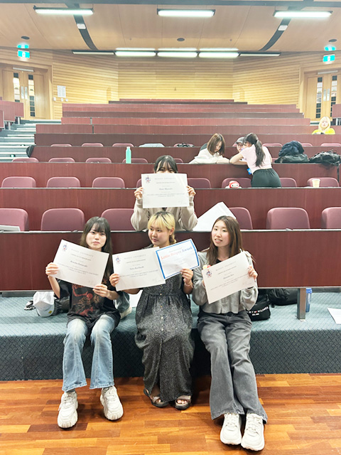 マッセイ大学の卒業式では、授業を担当してくださった先生が、学生1人ひとりに卒業証書を渡してくれました。卒業証書の他に、特別賞のようなものを少し用意してくださっていて、式の中で、全員の推薦や投票で受賞者を決めました。私は“good helper”という賞をいただきました!