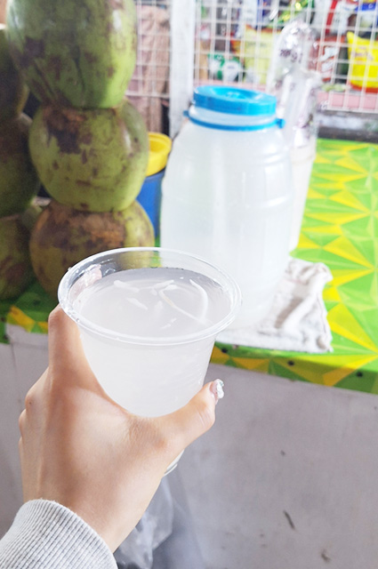 【写真】ローカルなココナッツジュースを飲みながら散歩