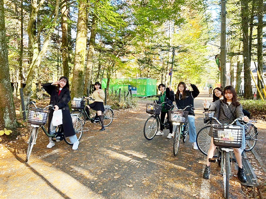 その後、一部の学生はBEB5軽井沢に宿泊し、翌日は自転車でリゾートの周りを散策。旧軽井沢に残る西洋の面影や、紅葉が見頃となる雲場池などを訪れ、観光地としての軽井沢について、肌で実感して体験することができました。