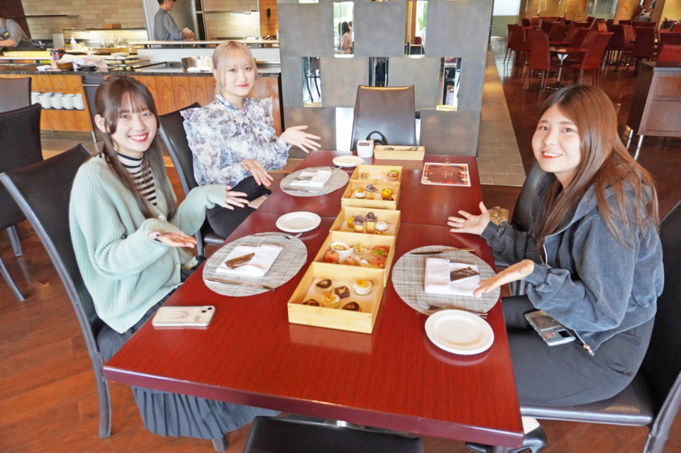 昼食には、バーラウンジ「silva(シルバ)」で、アフタヌーンティーを体験しました。本格的な紅茶や華やかなスイーツを楽しみながら、ホテルならではのおもてなしを学ぶことができました。実践的に学びながら、お客様目線で美味しい時間を過ごすことで、より印象的で学びの多い「ホテル見学会」体験となりました。