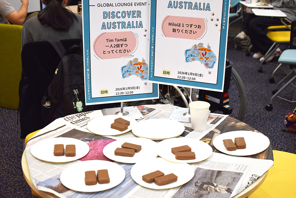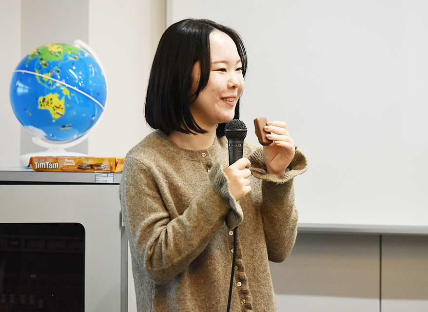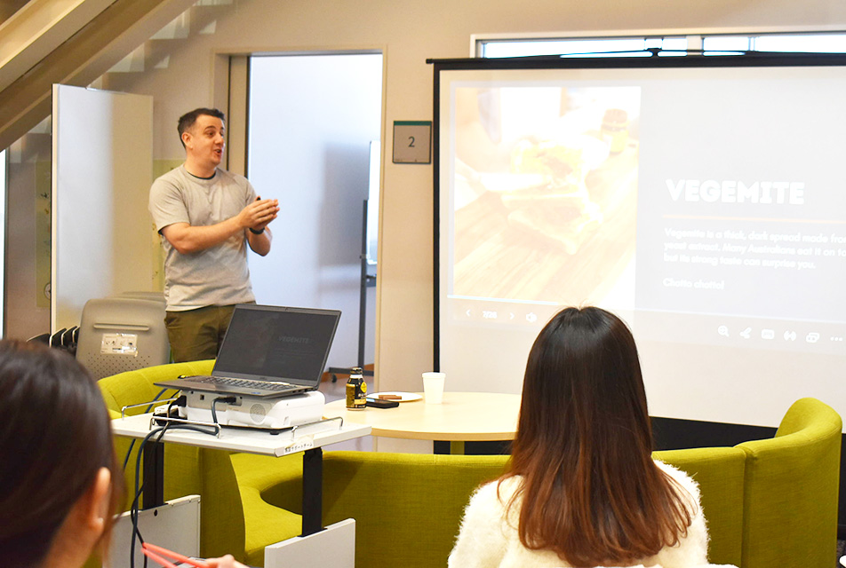 参加した学生たちには、オーストラリア発祥の食べ物「Tim Tam」と「ベジマイト(Vegemite)」、飲み物の「MILO」が配られました。また、「Tim Tam」を「MILO」に浸して食べるオーストラリアならではの食べ方も紹介され、学生たちは実際にオーストラリアの味を楽しみました。