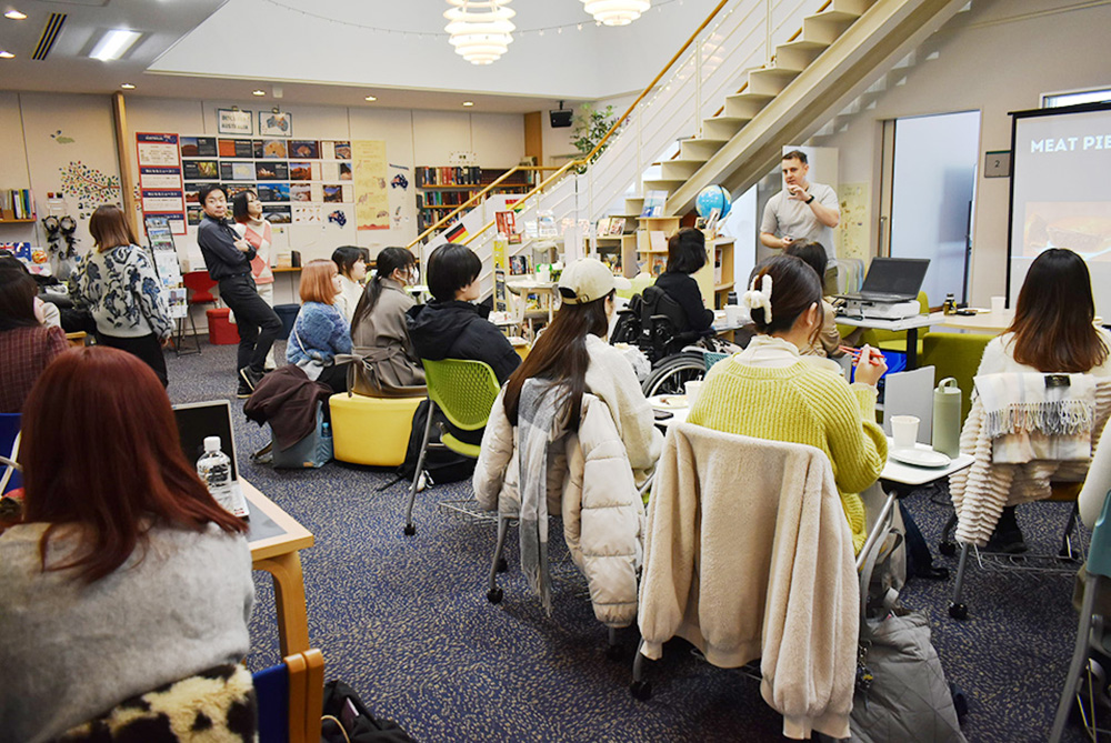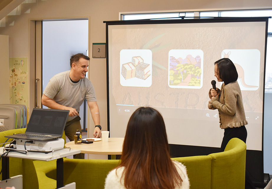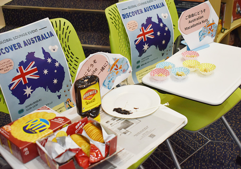 1月9日、東館10階にあるグローバル・ラウンジ※で、オーストラリアについて紹介するイベント「Discover Australia」を開催しました。当日は、国際学科のケイン・リントン外国人特任講師と、オーストラリアへの留学経験をもつ学生が登壇。オーストラリアの豊かな自然や、動物たち、現地で親しまれている有名な食べ物、文化や生活の様子などについて、写真やエピソードを交えながら紹介しました。