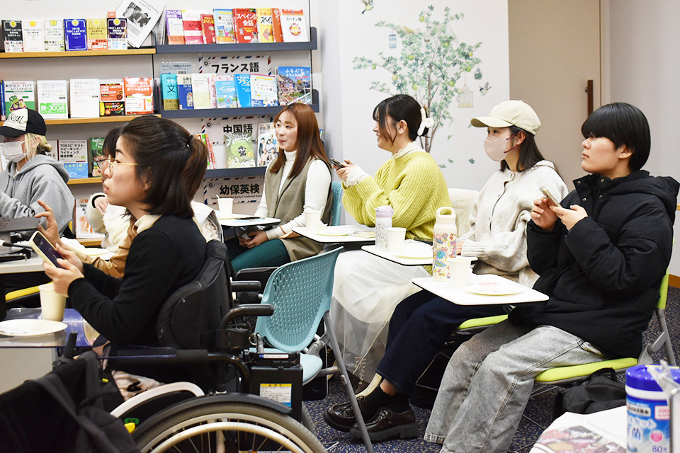 ※グローバル・ラウンジは国際学部(英語コミュニケーション学科・国際学科)の学生たちが自由に利用できる施設。授業で使用する以外にも、英語でのコミュニケーションスキルをアップするためのイベントや海外の文化に触れるイベントなどを年間通して、数多く、開催しています。