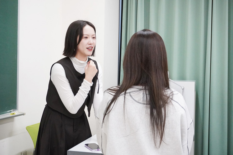 講演後には質疑応答の時間が設けられ、研究内容に関する質問に加え、康さんの進学経験について関心を持つ学生の姿も見られました。留学生として海外の大学院で学ぶことの実際や研究生活について直接話を聞く機会となり、将来の進路を考える契機にもなったようです。