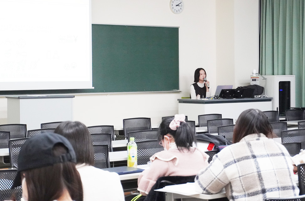 国際学科では、観光や国際交流に関する専門的なテーマについて理解を深めるため、外部講師を招いた講演会を実施しています。