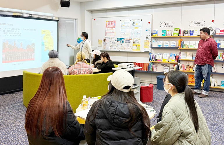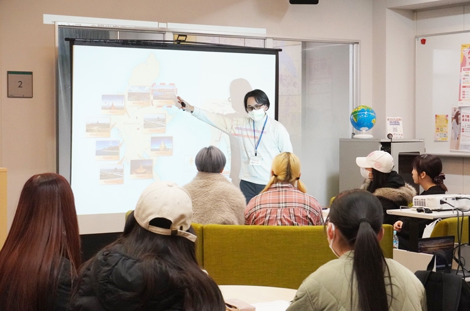 国際学科では、国際社会の現状を多角的に理解するために外部から講師を招き、さまざまな講演会を実施しています。1月20日、駒沢女子大学 専任講師のゼイヤーウィン氏を講師にお迎えし、講演会「フィールドワークからのアプローチ:研究と実践のあいだで見るミャンマー」を開催しました。