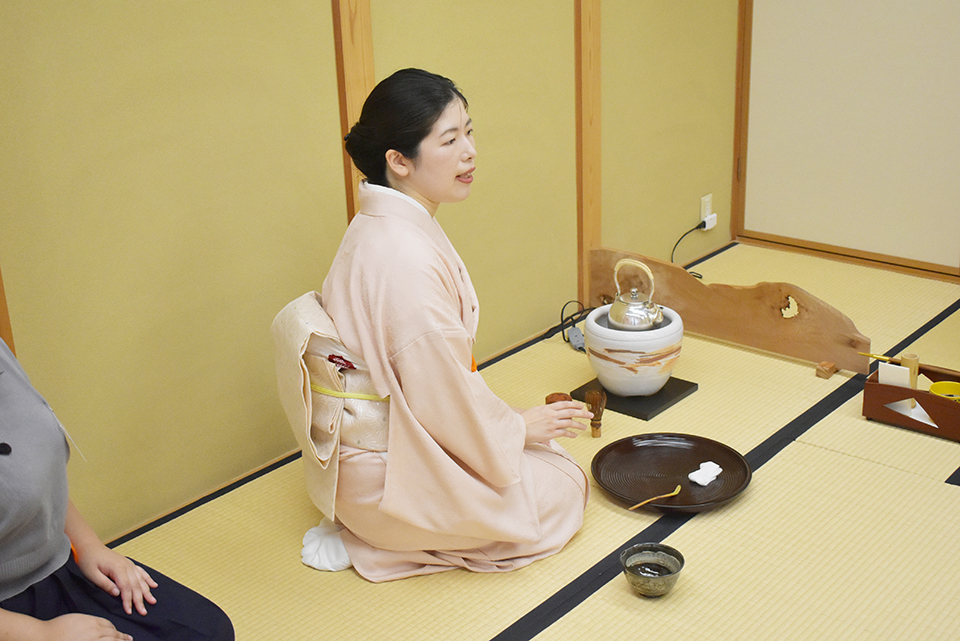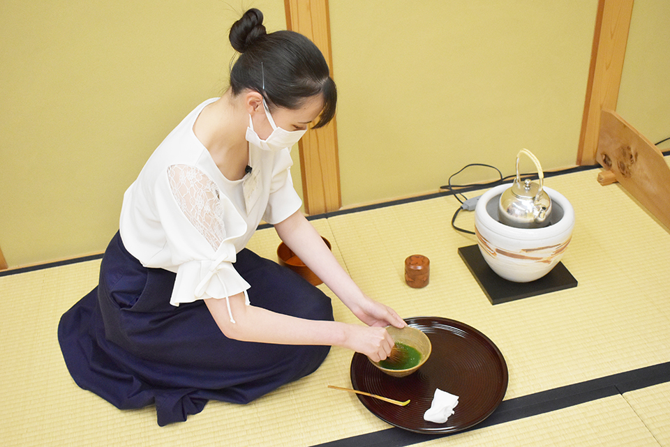 【写真】茶道経験のある学生が代表してお茶を点てました