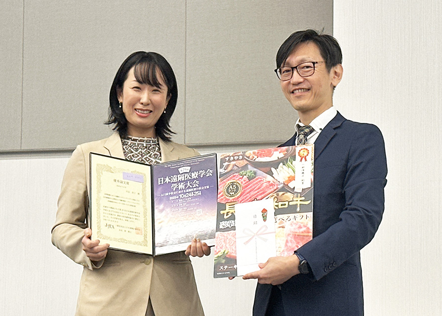 10月24日・25日に長崎市で開催された「第29回日本遠隔医療学会学術大会」にて、看護学科の天谷尚子助教が優秀論文賞を受賞しました。論文のタイトルは「訪問看護における遠隔モニタリングシステム実装による在宅療養者の心理的変化の予備的検討―スマートウォッチと非接触型生体センサーを用いた介入前後比較―」です。