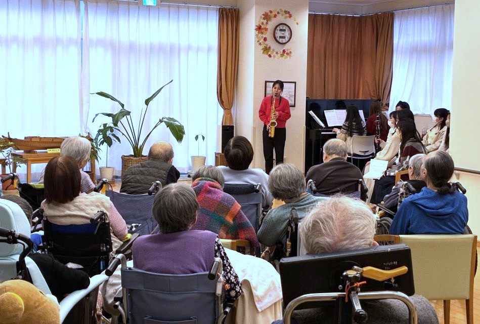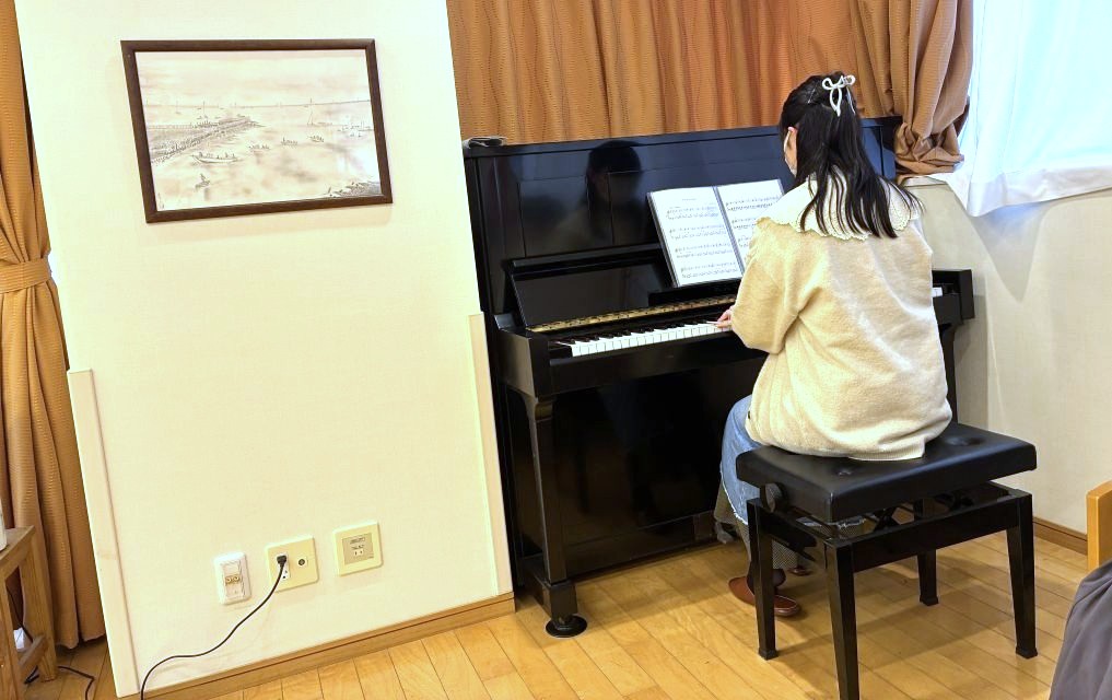 サークル「和洋ピアノソサィエティー」に所属する学生たちが、高齢者施設でボランティア演奏を行いました