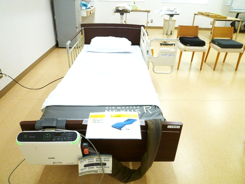 【写真】褥瘡予防の福祉用具のエアマットに実際に臥床して体験