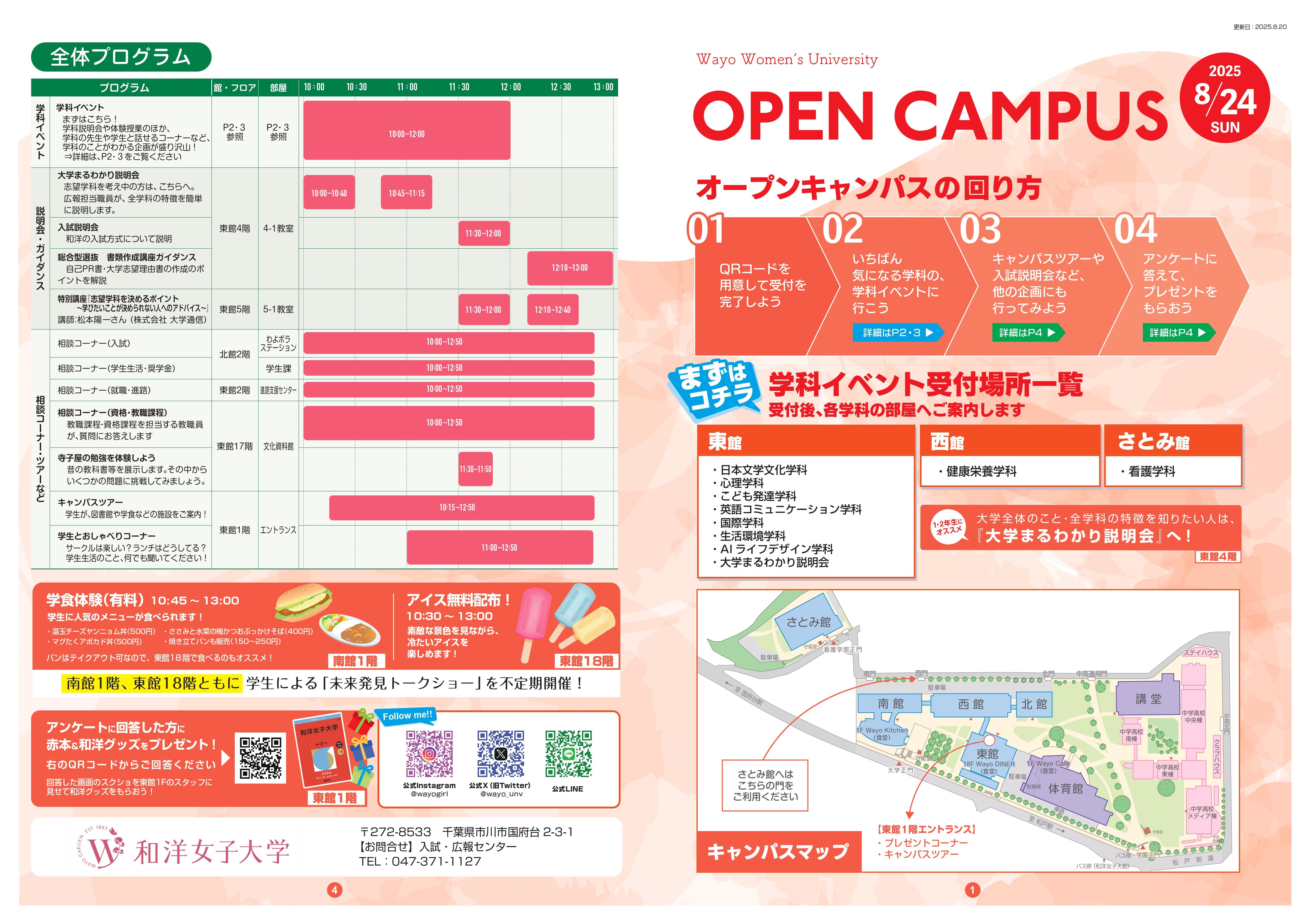 他にも、キャンパス見学ツアーや教員・学生と話せるコーナー、総合型選抜の書類作成講座や入試の専門スタッフに相談できる入試相談コーナーなど、たくさんの企画を用意してお待ちしています! 当日のプログラム詳細は、順次、ホームページで公開します。お楽しみに!
