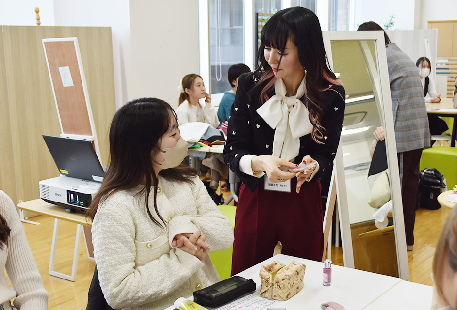 和洋女子大学の在学生を対象に、“内から外からキレイになろう!”をテーマに年間を通して開催しているステキ講座。過去には「顔タイプ診断」や「骨格診断」など、毎年、多くの学生たちが参加し、楽しみながら自分の魅力に磨きをかけています!