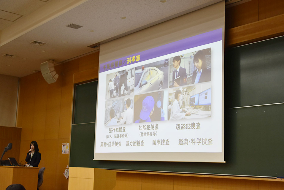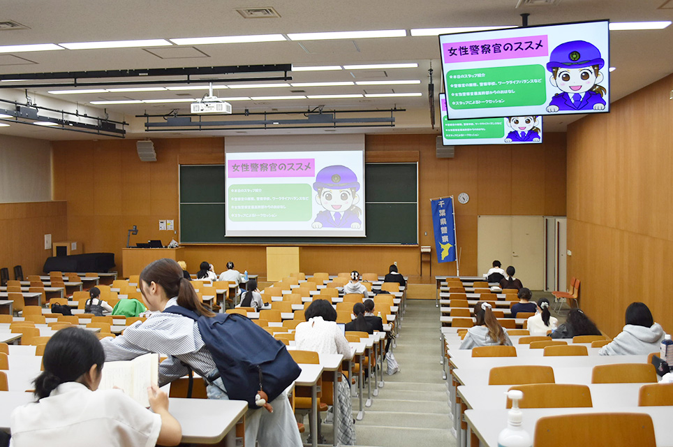 10月14日(火)、千葉県警察本部の女性警察官の方をお招きして、「女性警察官キャリア紹介~警察の仕事を知ろう~セミナー」を開催しました。