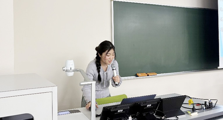 【写真】自分の就職活動を振り返ってプレゼンテーションをする4年生。これまでの大学の授業での学びも活かし、わかりやすく伝わりやすいプレゼンテーションでした