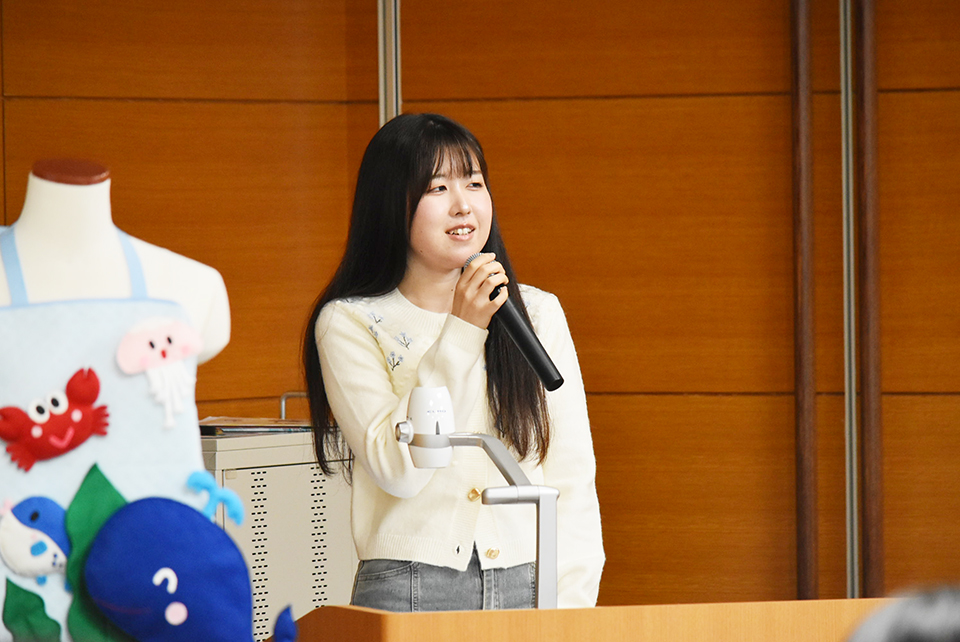 午後は、全体プログラムとして「先輩へのインタビュー」を行いました。千葉女子高校家政科の卒業生である、こども発達学科4年生と服飾造形学科3年生が参加し、進路先として本学を選択した理由、大学の授業の様子、後輩に対してこれからの高校生活や進路選択に向けたアドバイス等について話をしてもらいました。高校生たちは学生の話に熱心に耳を傾け、大学卒業後の進路について質問するなど前向きな姿勢で取り組んでいました。