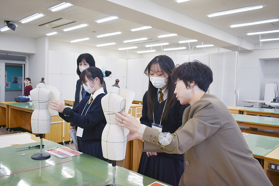 2025年11月4日、和洋女子大学と高大連携事業協定校である千葉県立千葉女子高等学校家政科の生徒75名が、和洋女子大学を会場とした「高大連携プログラム」に参加しました。このプログラムは、和洋女子大学と千葉県立千葉女子高等学校が高大連携事業協定を締結して以来、毎年、実施しています。参加した高校生が大学レベルの教育や研究に触れ、学習意欲や能力の向上を図るとともに、大学と高校が連携した教育の一層の発展をめざします。午前中は、こども発達学科、服飾造形学科、健康栄養学科、家政福祉学科、看護学科の5学科に分かれて講座を開催。高校生たちは自身の興味に応じて大学の授業を選択しました。各講座の講座名と担当教員は以下のとおりです。