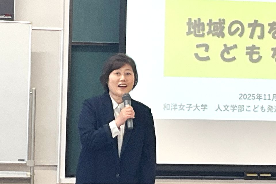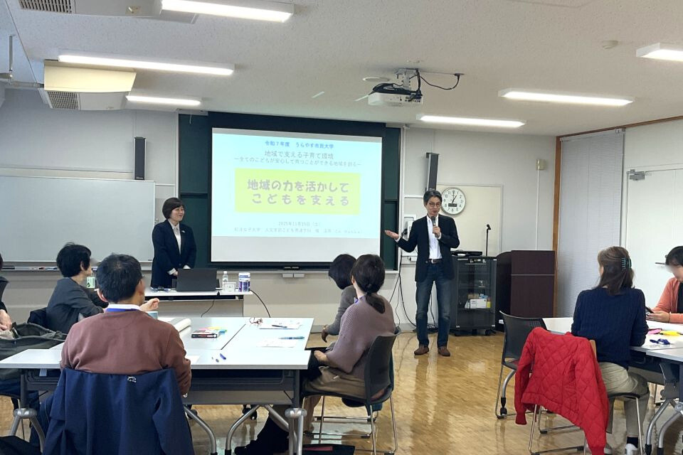 11月15日、浦安市が主催する「うらやす市民大学※」の秋期講座シリーズのうち、こども発達学科の権泫珠教授による講座「地域の力を活かしてこどもを支える(1)(2)」が開催されました。シリーズ第5回・第6回にあたる今回は、さまざまな地域住民の力を活かした子育て環境づくりについて、「こども食堂」や「こどもと高齢者との交流事業」の取組等の事例をもとに、講義とワークショップを行いました。