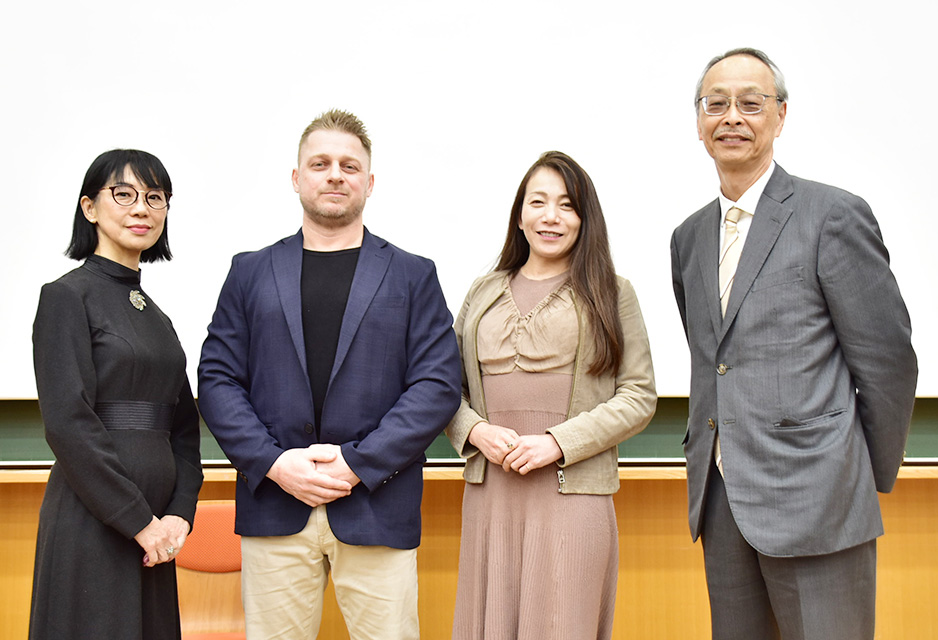 はじめに、総合研究機構の代表である家政福祉学科 岸田宏司教授による挨拶があり、その後、前半の第1部として映画(78分)の上映を実施。後半の第2部では、映画監督(ライオーン・マカヴォイ氏)ならびに出演された方をお迎えし、トークセッションを開催しました。司会は全学教育センターの奈良玲子准教授です。