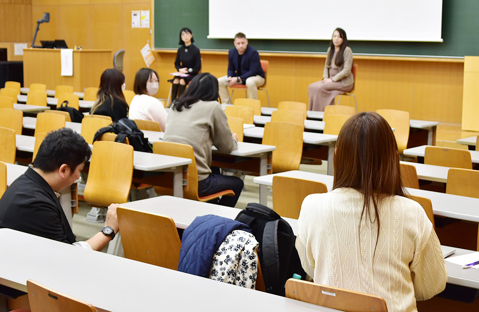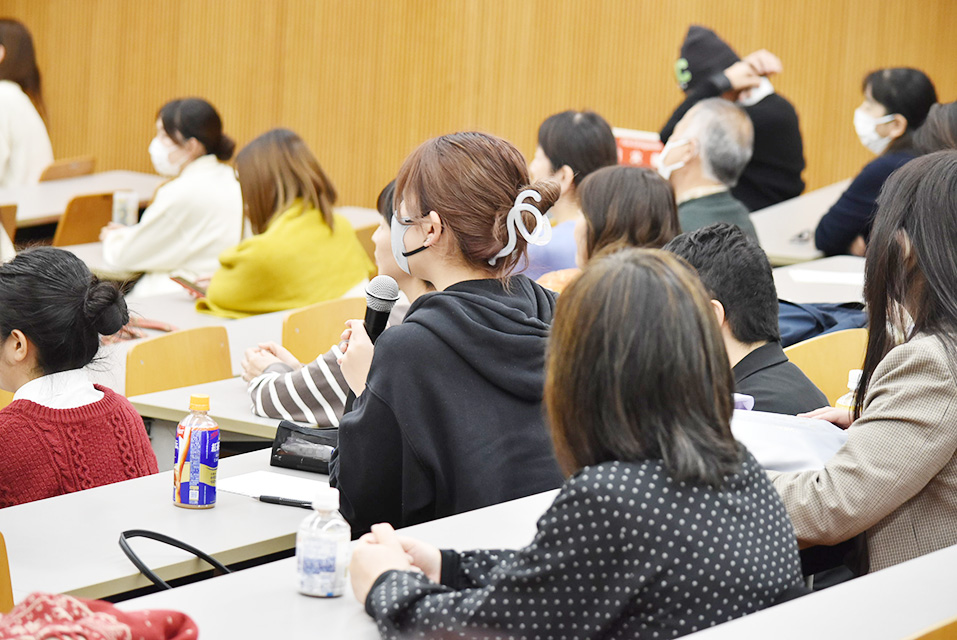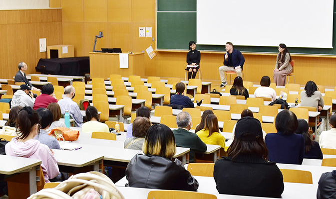 当日は、和洋女子大学の学生だけでなく一般の方も多くご来場くださいました。トークセッションでは「(ライオーン・マカヴォイ氏に向けて)日本に来た頃と今の日本の印象の違いは?」「(出演者に向けて)はじめに映画出演の声がかかったときはどういう気持ちだったか」などの質問があり、それに対してお二人は丁寧に答えてくださいました。また、出演者の方がシングルマザーだった頃のエピソードを交えて語られたほか、ライオーン・マカヴォイ氏による映画制作の裏話では、会場から笑いが起こる場面もありました。
